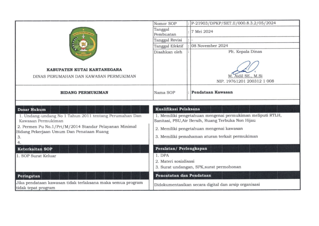 SOP Pendataan Kawasan